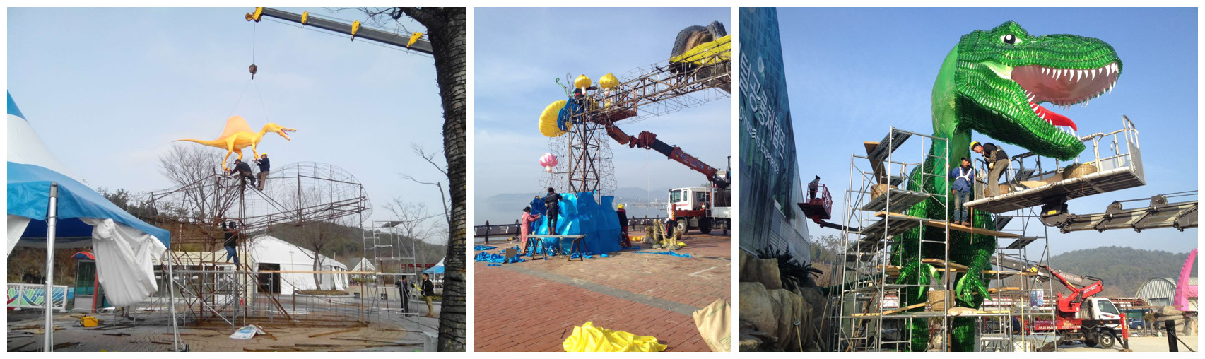 由自貢燈貿(mào)股份有限公司承制的“2016年慶南固城恐龍世界博覽會”目前已進(jìn)入安裝調(diào)試階段,展會共有百余組大中型彩燈和仿真卡通恐龍,預(yù)計將于4月1日如期開幕。