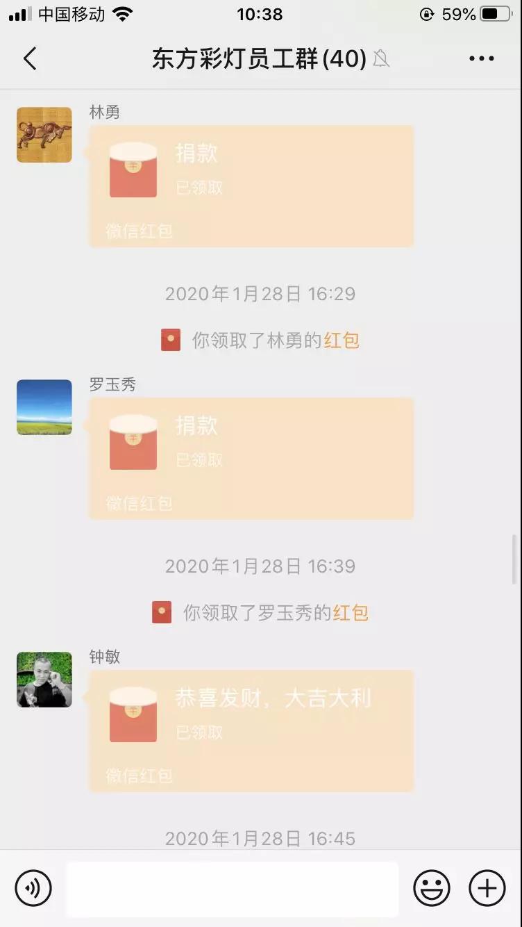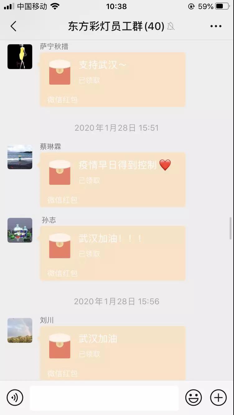 眾志成城,共克時艱。面對疫情,沒有人是一座孤島,我們隔絕病毒,但是絕對不隔離愛。在這場沒有硝煙的戰(zhàn)役里,東方彩燈作出迅速響應(yīng),密切關(guān)注疫情發(fā)展,大家一致研究決定向湖北省武漢人民伸出援助之手,公司和員工共計捐款近3萬元,來共同對抗這場突如其來的疫情,以助力馳援武漢,守望相助,為武漢加油。